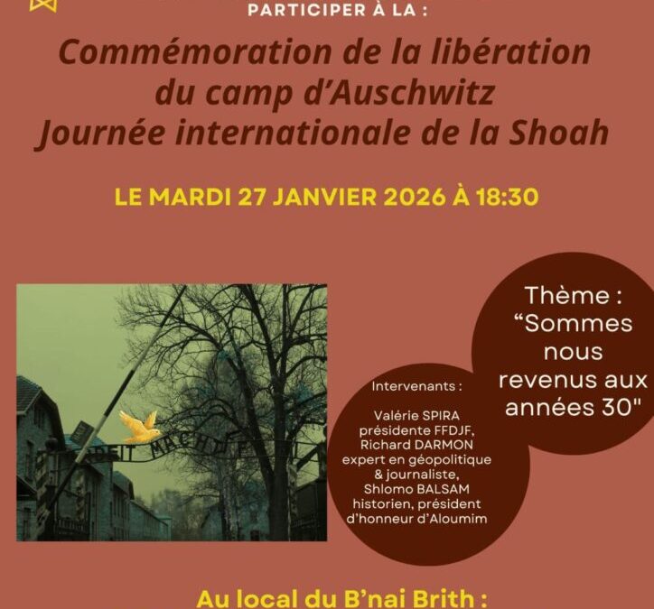 Commémoration du 81ème anniversaire de la libération d’Auschwitz – 27 Janvier 2026 par aloumim.com | Jan 27, 2026 | Evenement | 0 commentaires Poster le commentaire Annuler la réponseVotre adresse e-mail ne sera pas publiée. Les champs obligatoires sont indiqués avec *Commentaire * Nom * E-mail * Site web Enregistrer mon nom, mon e-mail et mon site dans le navigateur pour mon prochain commentaire.
